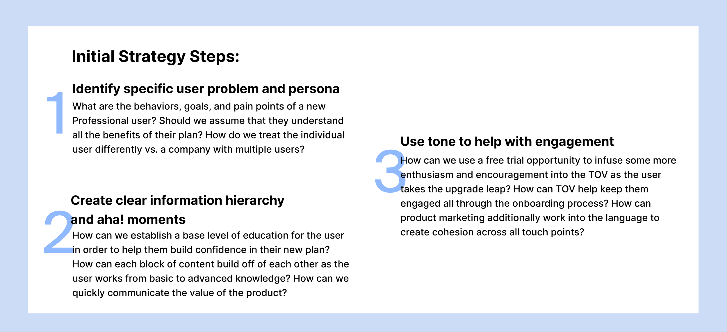 This is an example of UX writing that spans plans and billing, checkout, in-product, home destination, email, home screen and more.